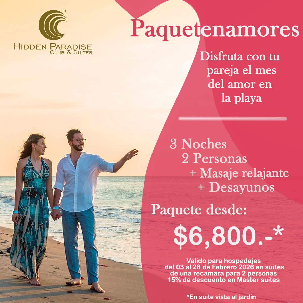 - Descuento exclusivo para parejas viajando entre el 1 y 28 de Febrero de 2026.